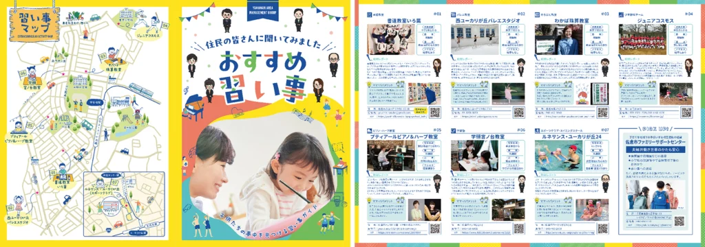エリアマネジメントグループは、山万が住民の皆様の声をより一層確実に受け止めることを目的に結成されたチームです。寄せられる声の中でもやはり子育てに関するご相談は多く、「ユーカリが丘ではどんな習い事ができるのかわからない」といったご意見を参考に「習い事マップ」を作成したこともありました。先生のお人柄や教えてくれる内容の特徴などをまとめたもので、既存住民様だけでなく、新しく移住を考えていらっしゃる方にとっても有益な情報源として活用しています。